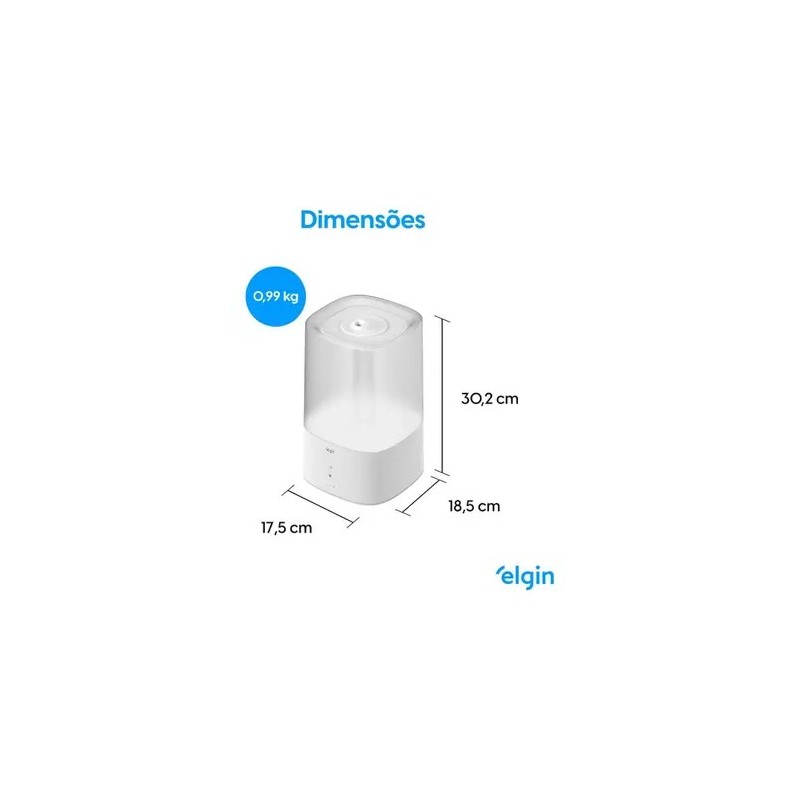 | Níveis de névoa | Três níveis de intensidade (baixo, médio e alto) para adequar a umidificação conforme a necessidade do ambiente |