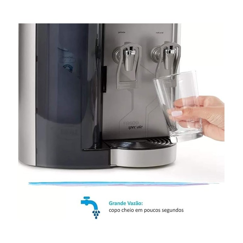 Só o FR600 Speciale tem a capacidade de uso que você precisa. Ele atende grande quantidade de pessoas e apresenta baixo custo de energia. Possui Refil ‘‘Girou, Trocou’’, nanotecnologia contra micro-organismos e está disponível nas cores branca, prata e preto.